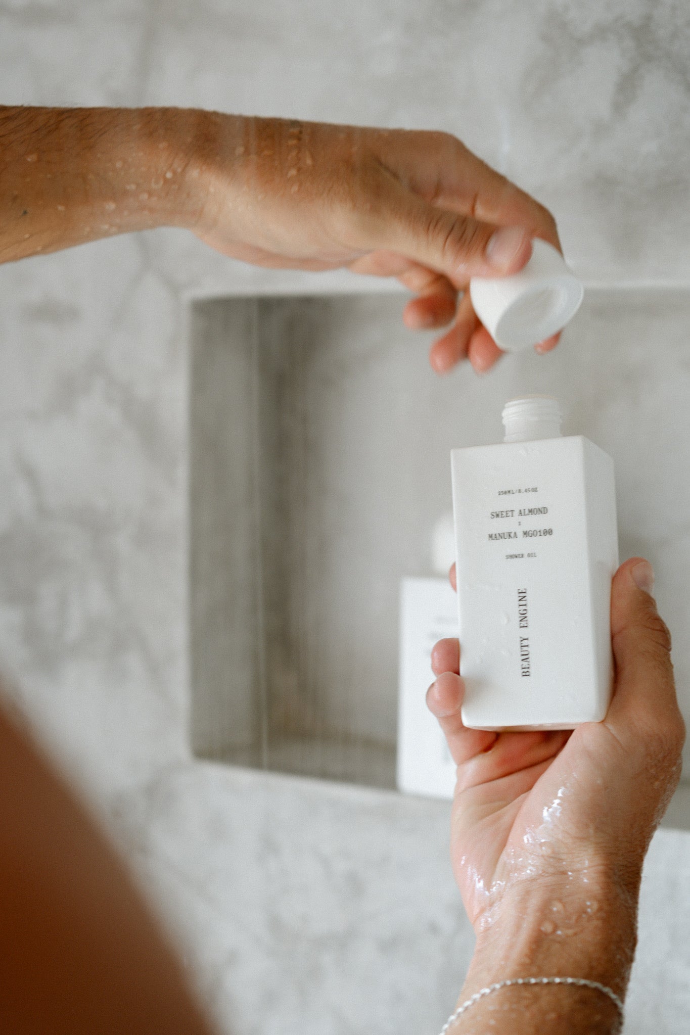 Beauty Engine Shower Oil is inspired by nature for the natural rhythms of our bodies. The main ingredients Sweet Almond Oil & Manuka Honey MGO 100 help to gently clean, soften, nourish and restore radiance back to the body. Made with natural and pure ingredients found in the farms of New Zealand. Gently and effortlessly easing into our selfcare rituals.